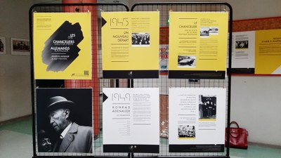 Au lycée, exposition sur les chanceliers allemands à partir de 1949 jusqu'en 2021.