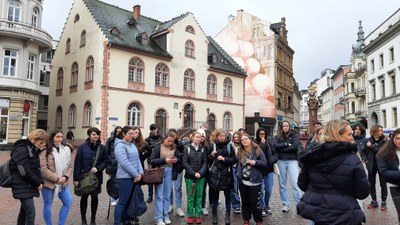 Ils ont pu suivre des cours au Stauffenberg-Gymnasium, visiter Francfort et réaliser un court-métrage au Musée du film, faire un rallye dans Wiesbaden, visiter le Musée d'Art de la ville et réaliser une lampe dans le style "Art nouveau" au cours d'un atelier, participer à une émission en live à la radio de Rüsselsheim etc ... Nos élèves se sont imprégnés de la culture allemande, ont beaucoup progressé à l'oral et ont crée des liens d'amitié très forts déjà. Certains ont d'ores et déjà prévus des retrouvailles l'été prochain et envisagent de participer au programme d'échange Brigitte Sauzay l'an prochain. Une belle réussite !