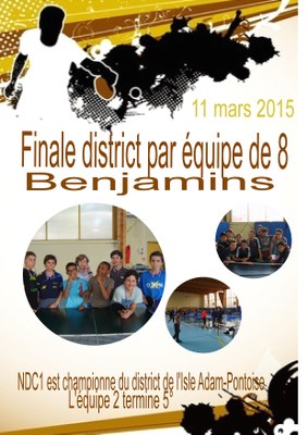 Le 11 mars les trois équipes qualifiées de NDC ont représenté leur école lors de la finale District qui se jouait à Parmain. Les élèves se sont retrouvés face aux équipes les plus fortes du secteur de l'Isle Adam et de Pontoise. La compétition réunissait 6 équipes de benjamins dont 2 de NDC et 4 équipes minimes dont 1 de NDC.