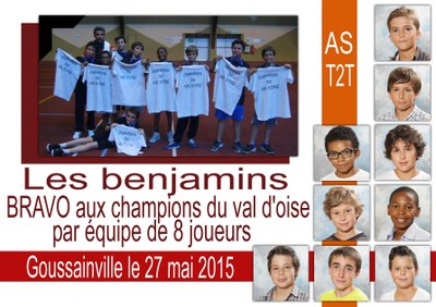 Les benjamins sont accrochés mais après des duels serrés, ils sont champions du Val d’Oise. Ils représenteront notre école et notre département le mercredi 3 juin à Bourg la reine lors de la finale académique.