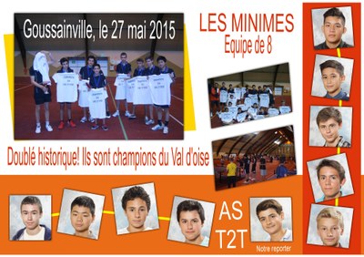 Malheureusement, les minimes ne pourront pas participer à la finale académique qui se jouera à Courbevoie. En effet, la plus part des joueurs seront au championnat de France en Ardèche par équipe de 4. La déception est de courte durée. Ils ramènent pour la deuxième année consécutive le trophée de champion du Val d’Oise qui ornera la vitrine de l’école.