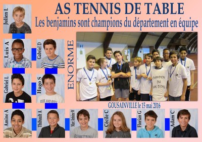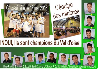 Les benjamins sont accrochés mais après s'être bien battus, ils sont champions du Val d’Oise. Les minimes aussi participeront à la finale académique qui se jouera à Monsoult. Comme les « petits » ils terminent sur la plus haute marche. Ils sont champions du département.