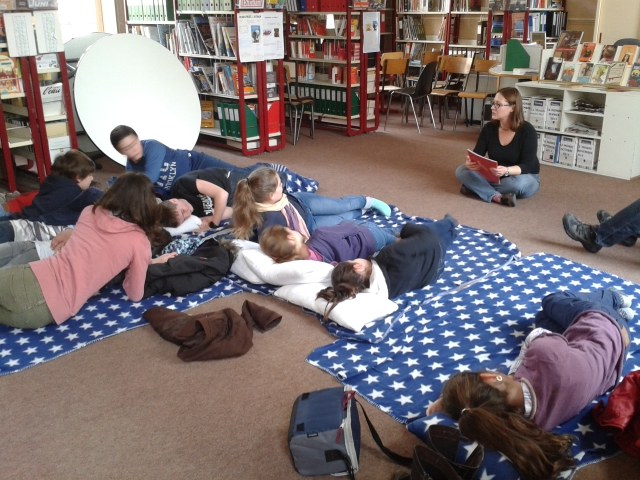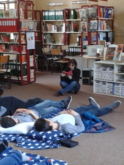 l'APEL organisait une semaine de la lecture et s'est tournée vers les professeurs-documentalistes pour animer ce moment particulier dans l'établissement. La sieste littéraire en a été le point fort : une quinzaine d'adultes se sont relayés chaque midi pour lire leurs histoires préférées (parfois même dans une langue étrangère) aux collégiens et lycéens.