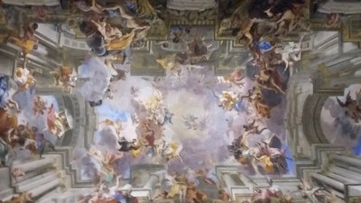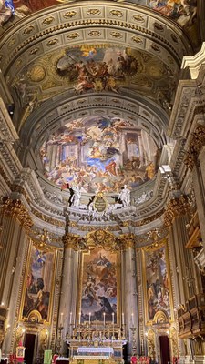 « Un des grands souvenirs du voyage : Saint-Ignace. Nous ne sommes pas tombés dans le piège des touristes en regardant dans le miroir, mais grâce à notre professeur, nous avons pu admirer la perspective de la peinture du plafond au meilleur endroit ! »