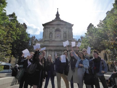 « Concilier plaisir et travail » ! Voilà l’objectif de la sortie organisée ce mercredi 2 mai avec les TL. Nous avons suivi les pas des personnages du roman au programme : Les faux-monnayeurs, d’André GIDE. Ainsi, nous avons parcouru les 5è et 6è arrondissements afin de découvrir l’ambiance, l’atmosphère dans laquelle ces personnages évoluent ; et l’inspiration venant, nous nous sommes même pris pour eux le temps d’une photo à des endroits emblématiques de l’histoire !