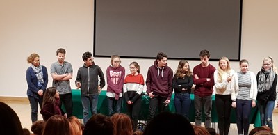 Dans le cadre des actions prévues autour de la Journée de l'amitié franco-allemande, fut organisée une rencontre des participants allemands et français aux Programmes Sauzay et ce au Lycée Hoche à Versailles le 28 janvier de 17h à 19h30 et qui permit aux élèves, aux parents, aux professeurs et chefs d’établissement concernés d’apporter leur témoignage. Une délégation d’élèves de notre lycée Notre Dame de la Compassion, engagés l’an dernier et cette année eut la chance de témoigner, accompagnés de leur professeur et tutrice, Mme Berthoumieu. Pour rappel, 9 élèves sur 2017-2018 et 14 cette année 2018-2019 ont participé au programme Brigitte Sauzay.