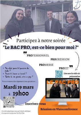 Une soirée en viso conférence préparée par les lycées catholiques de l'enseignement professionnel du Val d'Oise pour répondre à vos questions sur le Baccalauréat professionnel.